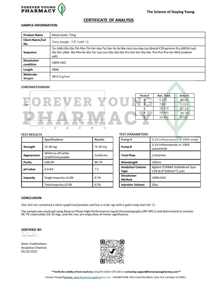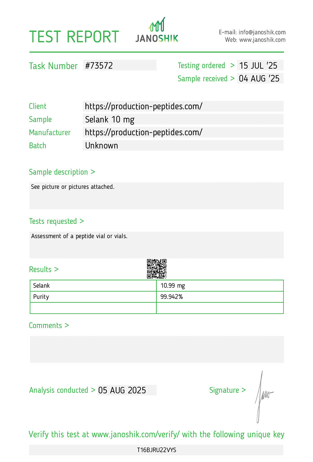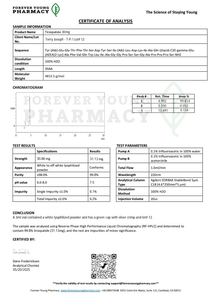 Every peptide batch wereceive gets sent to an independent third partytesting lab to be analyzed and tested for identityof the peptides, purity, and concentration.All peptides are labeled with their corresponding batch number.